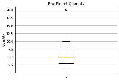 plt.title('Box Plot of Quantity')