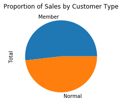 plt.title('Proportion of Sales by Customer Type')