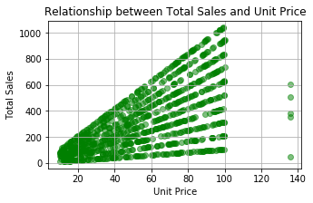 plt.title('Relationship between Total Sales and Unit Price')